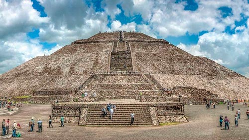 Después, recorrido por la zona arqueológica de Teotihuacán, donde podrás caminar entre sus monumentales construcciones: Pirámides del Sol y la Luna, y la Calzada de los Muertos.